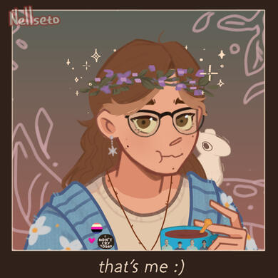 I'm Elliott, 20 years old, pansexual & genderfluid! (afab, any pronouns but it/its or disc/discs!)